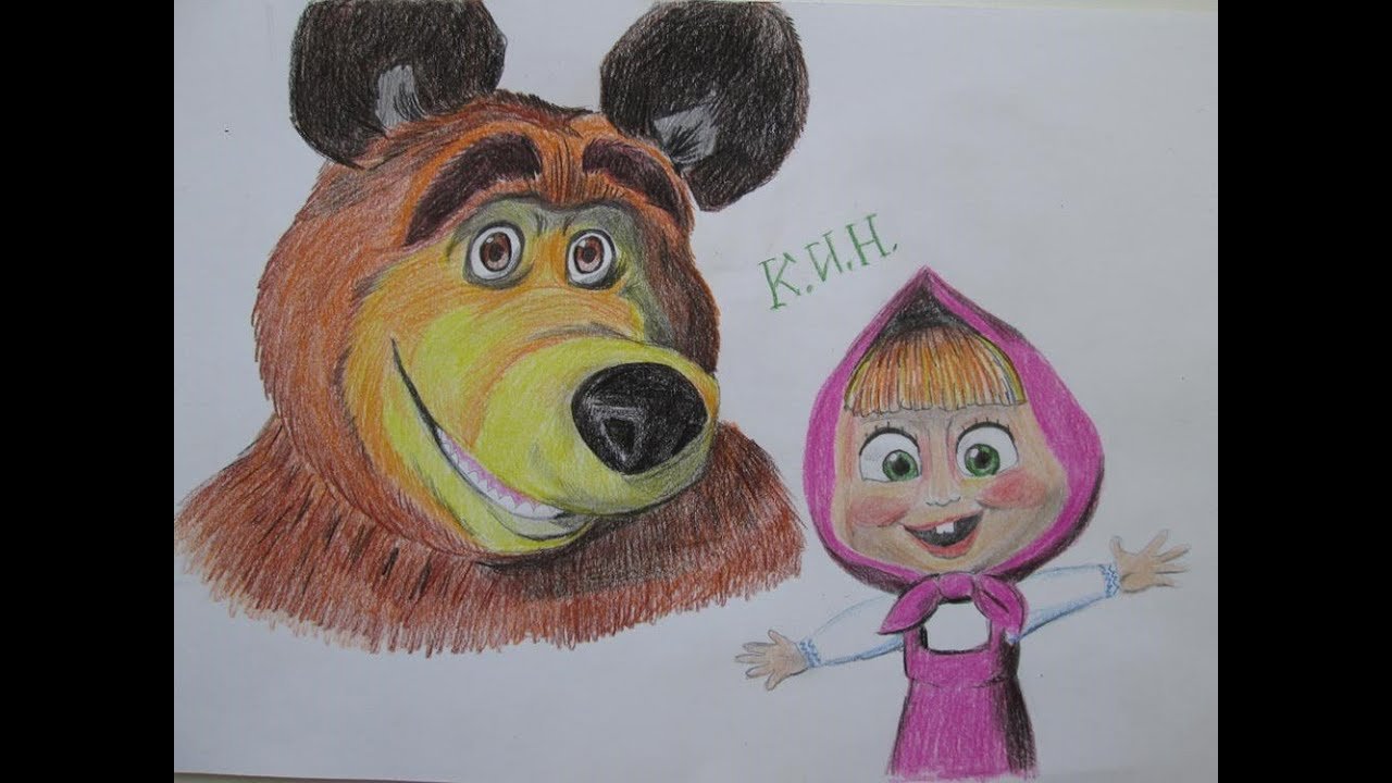 Маша и медведь рисунок детский