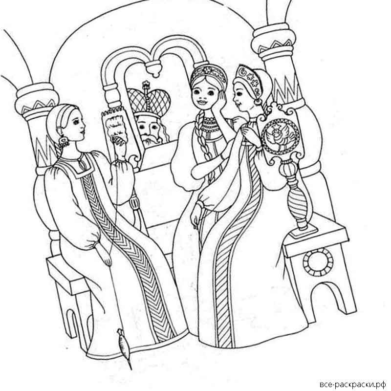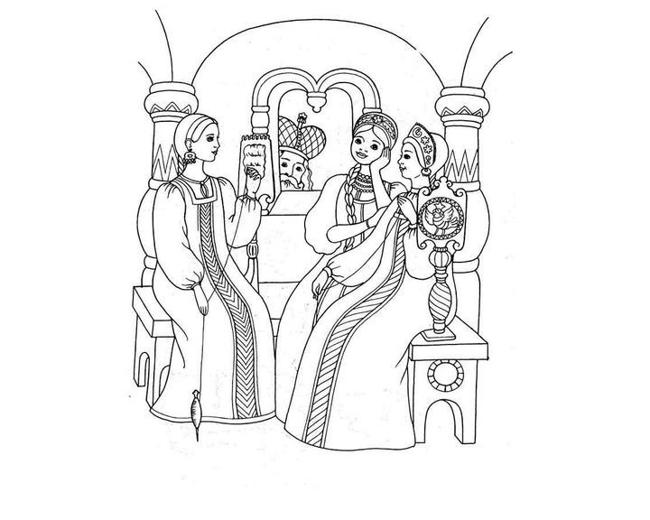 Сказка о царе Салтане раскраска три девицы под окном