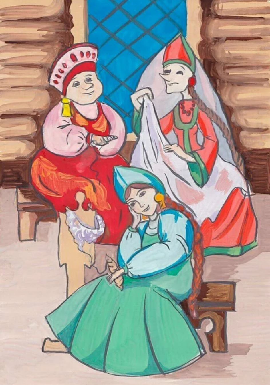 ![Рисунок на тему три девицы под окном]()
