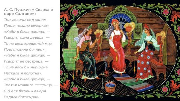 Сказка о царе Салтане три девицы под окном пряли поздно вечерком
