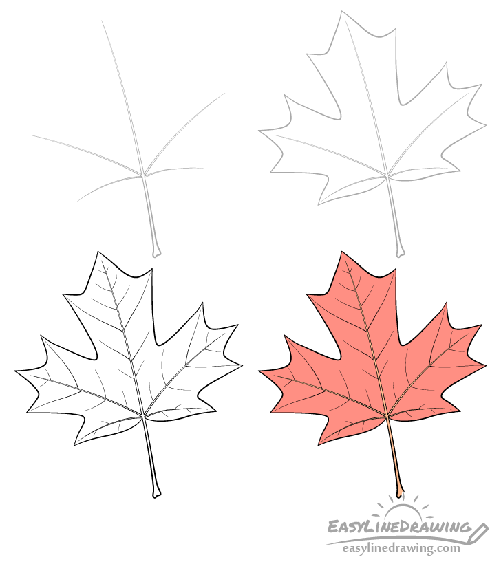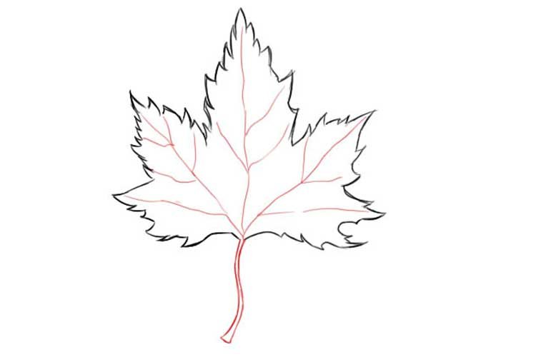 Поэтапный рисунок листа клена