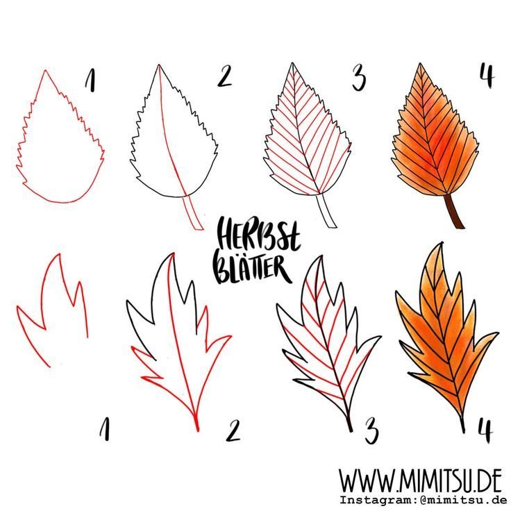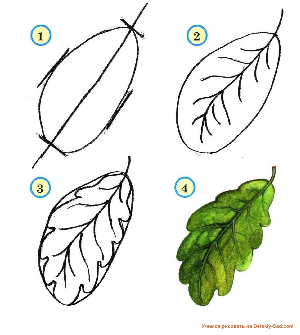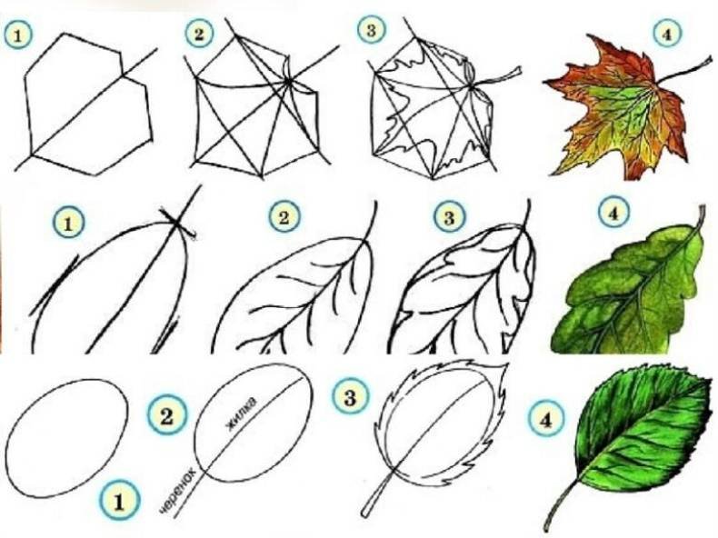 Как рисовать листья пошагово