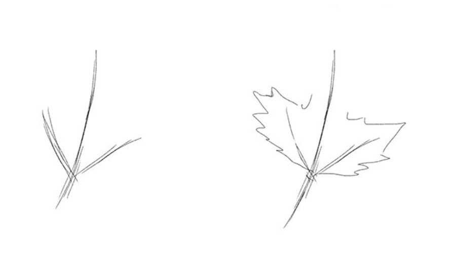 Поэтапное рисование листьев
