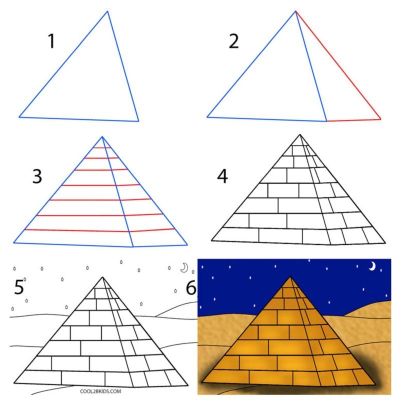 Пирамида рисунки легкие - это набор иллюстраций, которые помогут вам легко и интересно освоить технику создания пирамидальных композиций на бумаге. В этом наборе вы найдете разнообразные изображения, начиная от простых и геометрических форм, до более сложных и детализированных объектов. Благодаря пошаговым инструкциям и подробным схемам, вы сможете без труда повторить каждый рисунок и постепенно улучшать свои навыки. Пирамида рисунки легкие - отличный выбор для начинающих художников и любителей рисования, желающих разнообразить свое творчество и научиться новому стилю.