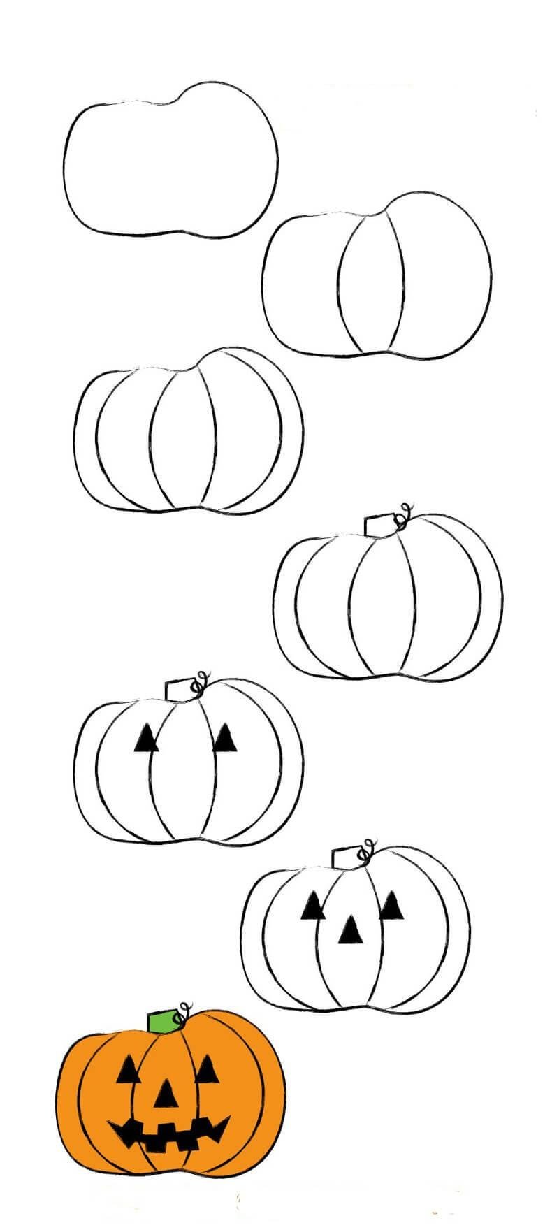 Поэтапное рисование тыквы на Хэллоуин
