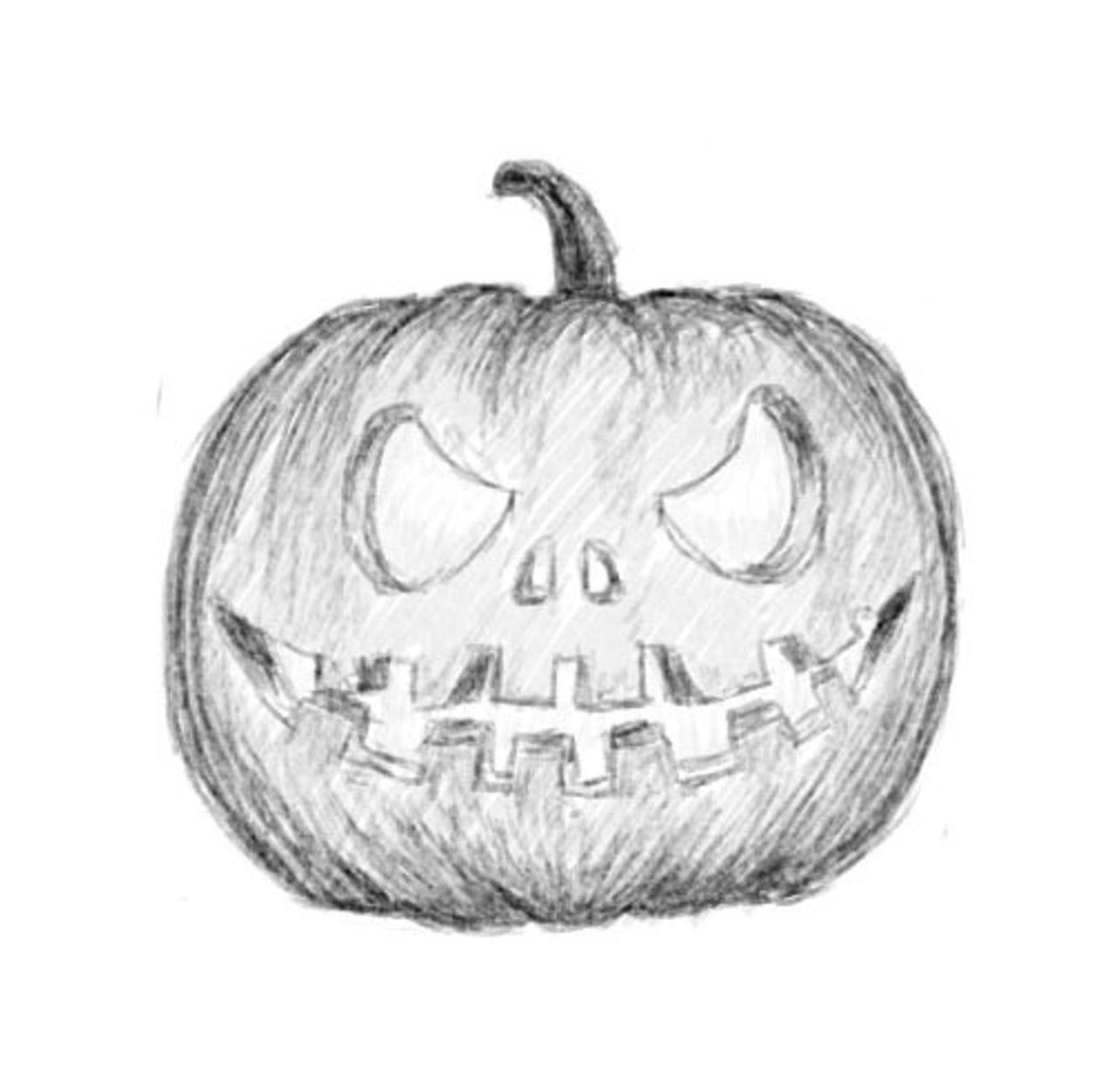 Рисунок тыковки на Хэллоуин карандашом