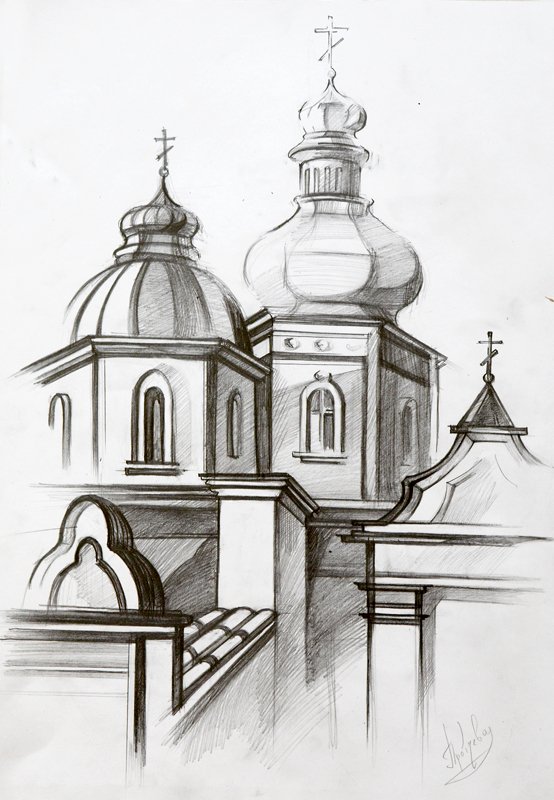 Церковь карандашом
