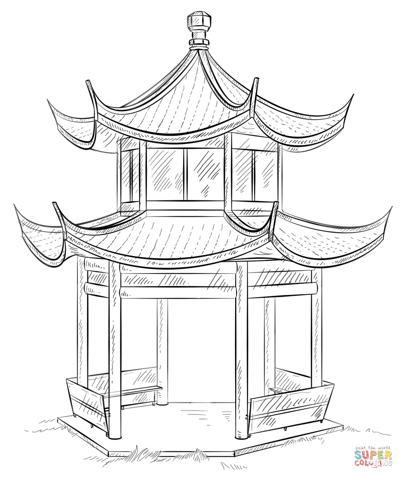 Китайская беседка сбоку скетч
