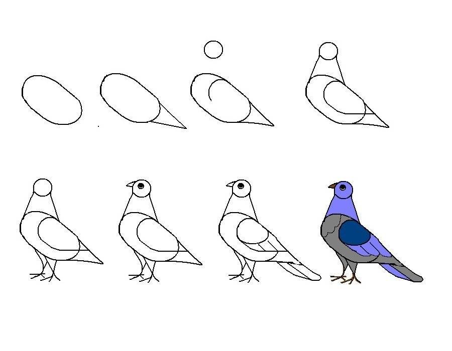 Поэтапное рисование птиц для детей