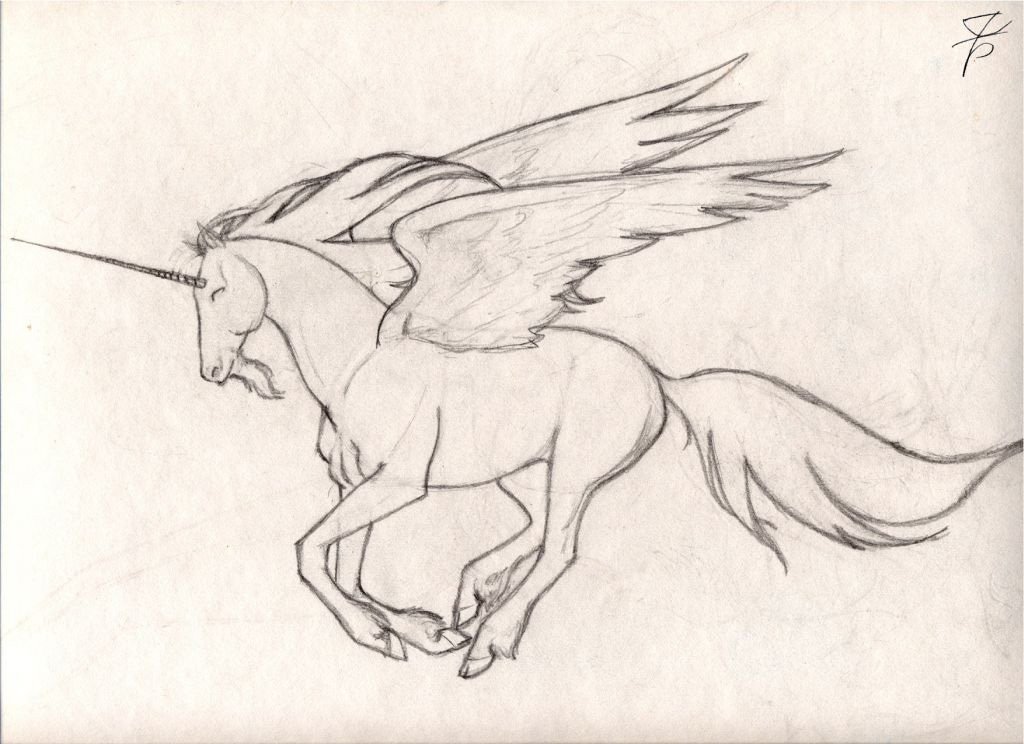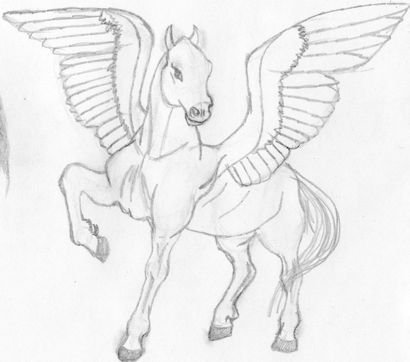 Лошадь с крыльями карандашом