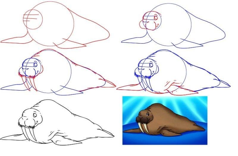 Поэтапное рисование моржа