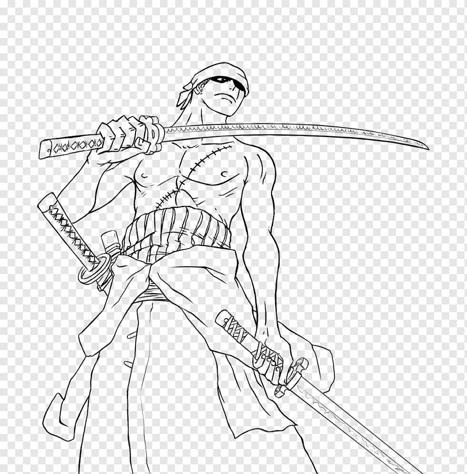 ![Зоро Ван Пис для срисовки]()