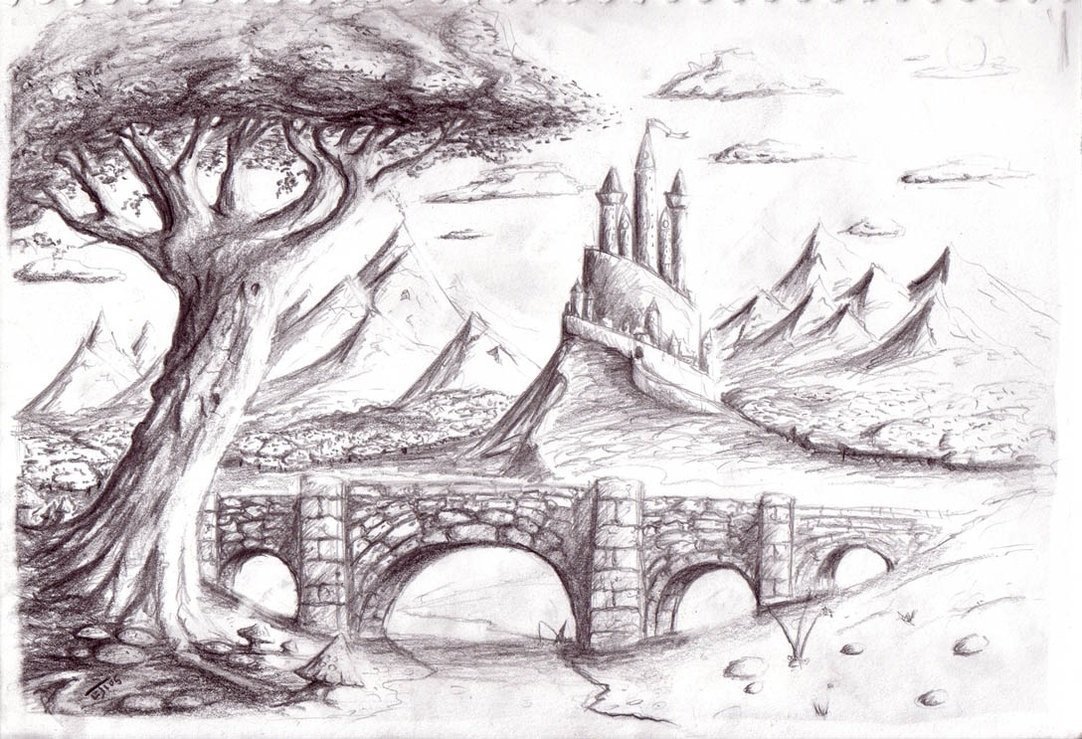 Фантастический пейзаж карандашом
