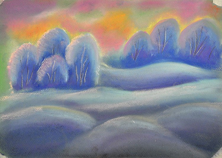 Пейзаж пастелью сухой