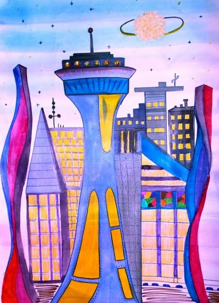 Город будущего рисунок