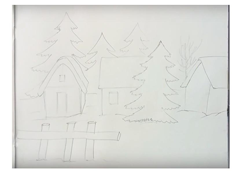 Зимний пейзаж карандашом в детский сад