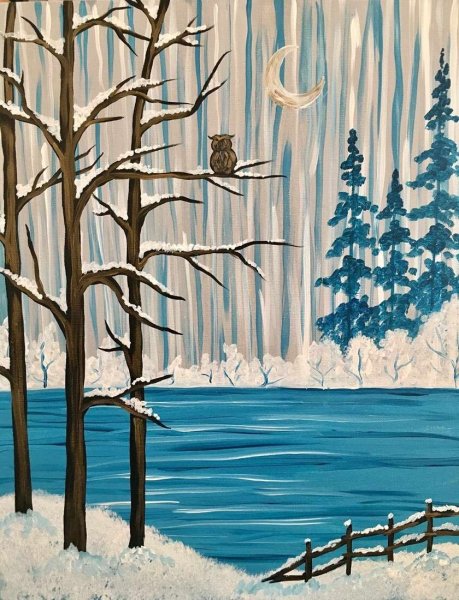 Зимний пейзаж пошагово