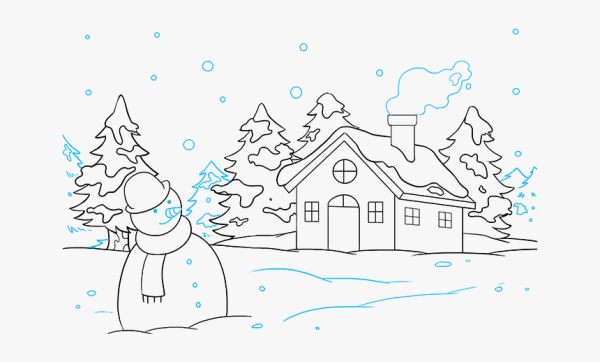 Зимний пейзаж для срисовывания