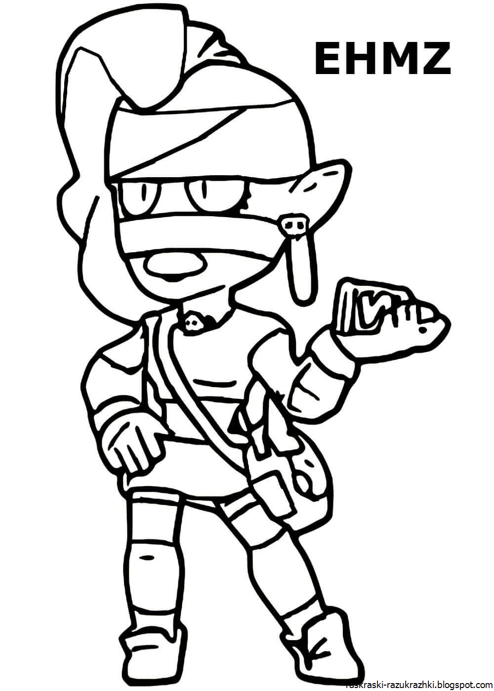 ![Боец Сэнди БРАВЛ старс раскраска]()