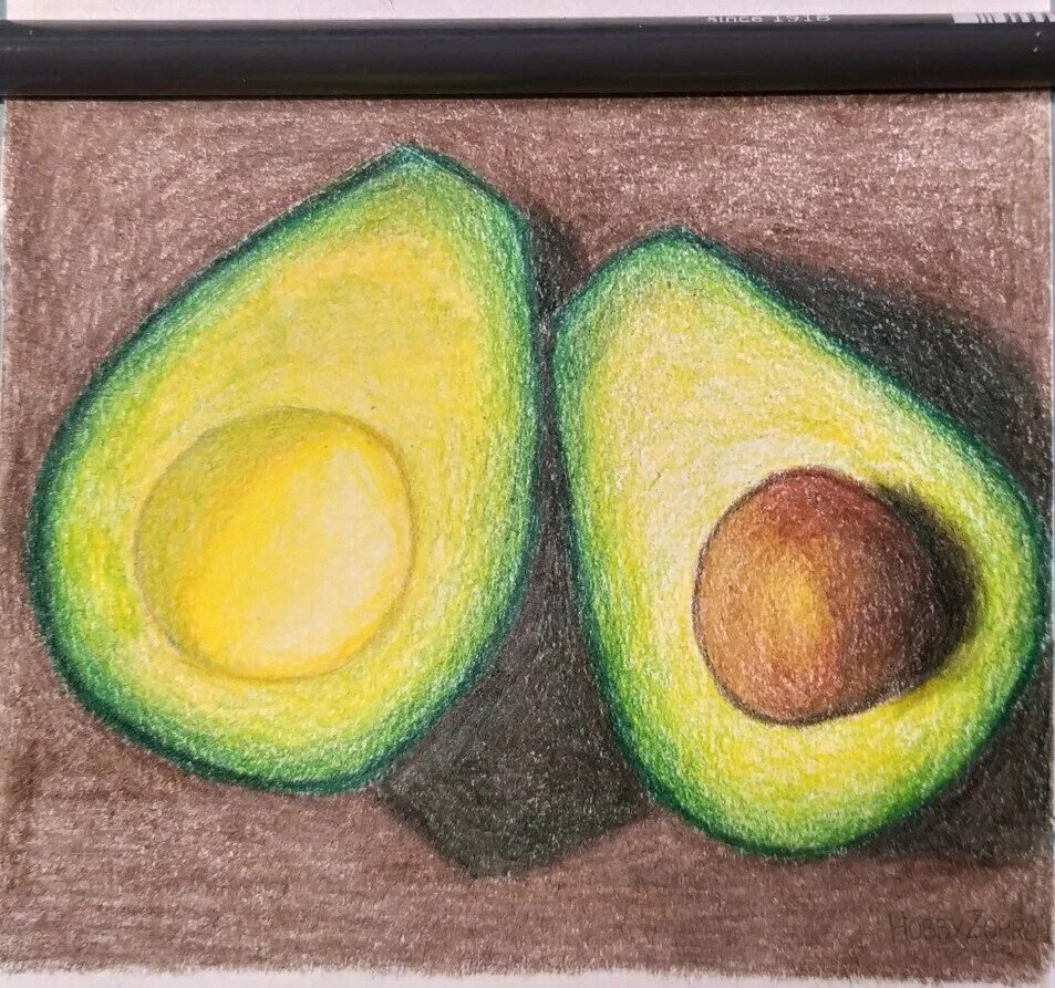 Авокадо цветными карандашами