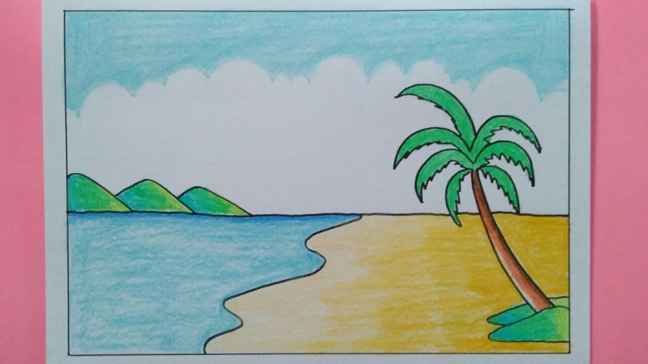Рисунок пляж и море карандашом