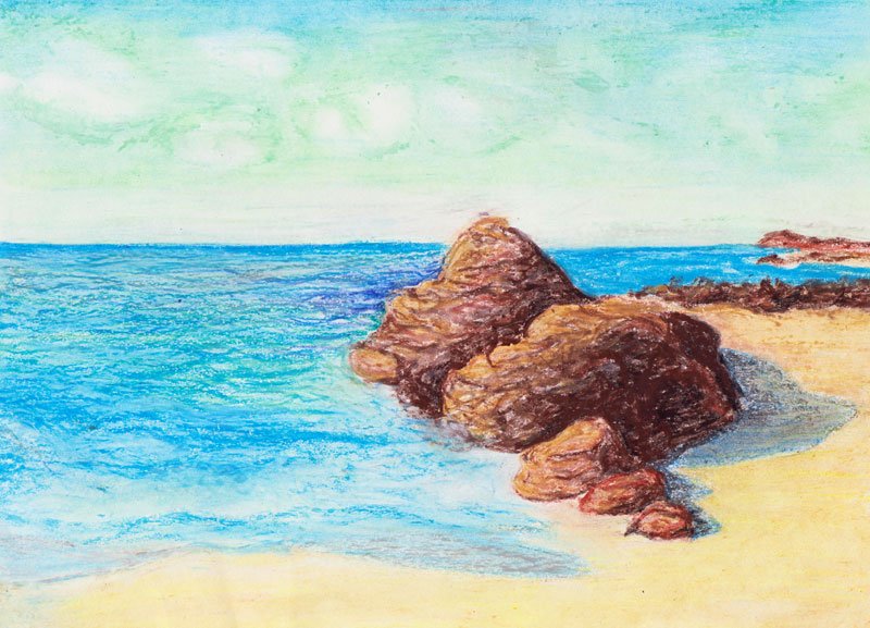 Морской пейзаж цветными карандашами