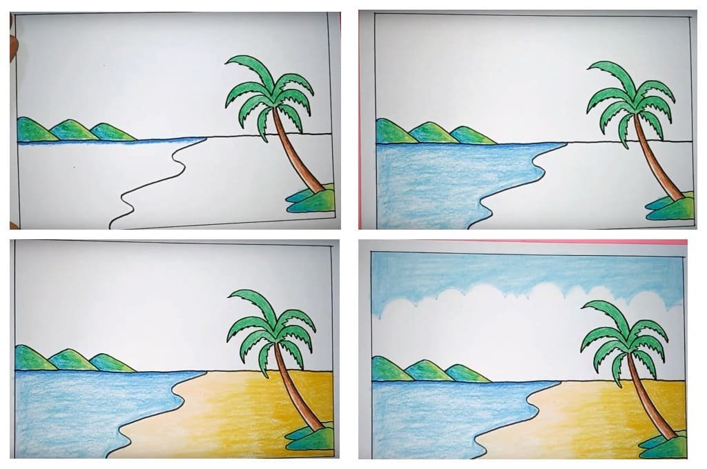 Морские пейзажи карандашом для детей
