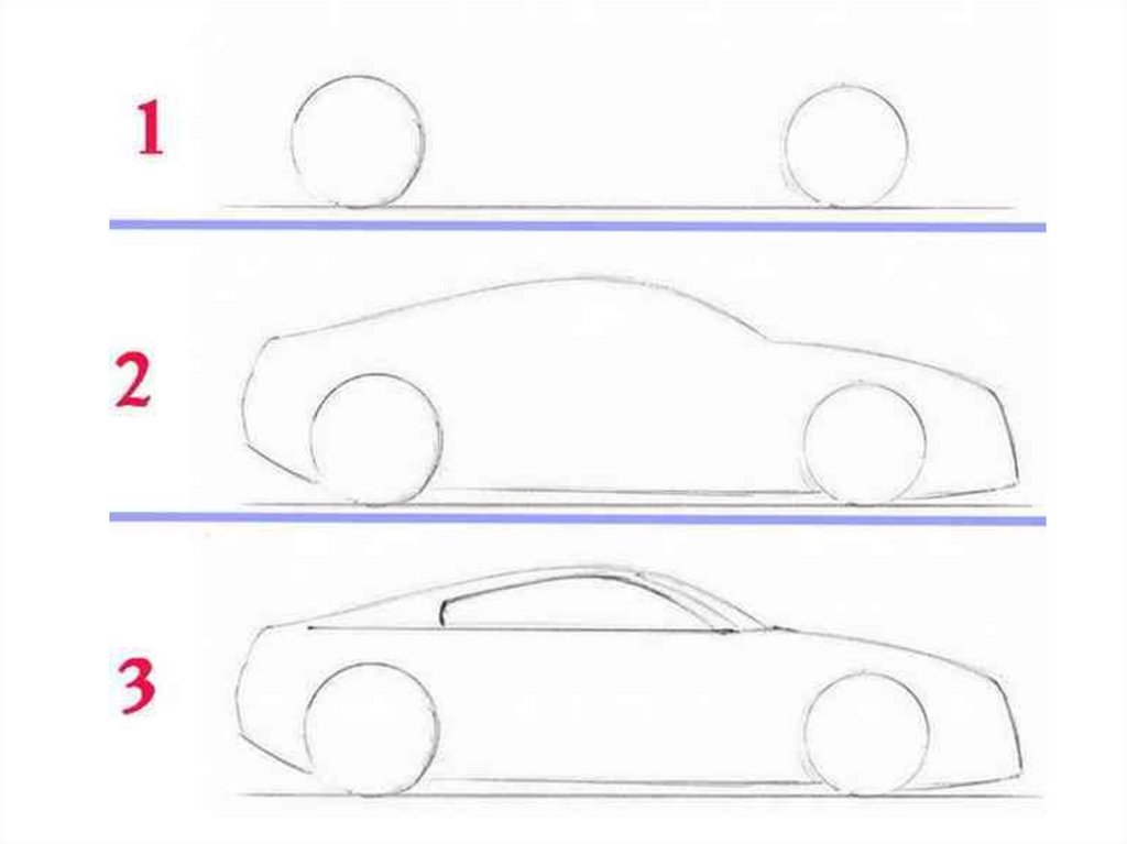 Этапы рисования автомобилей