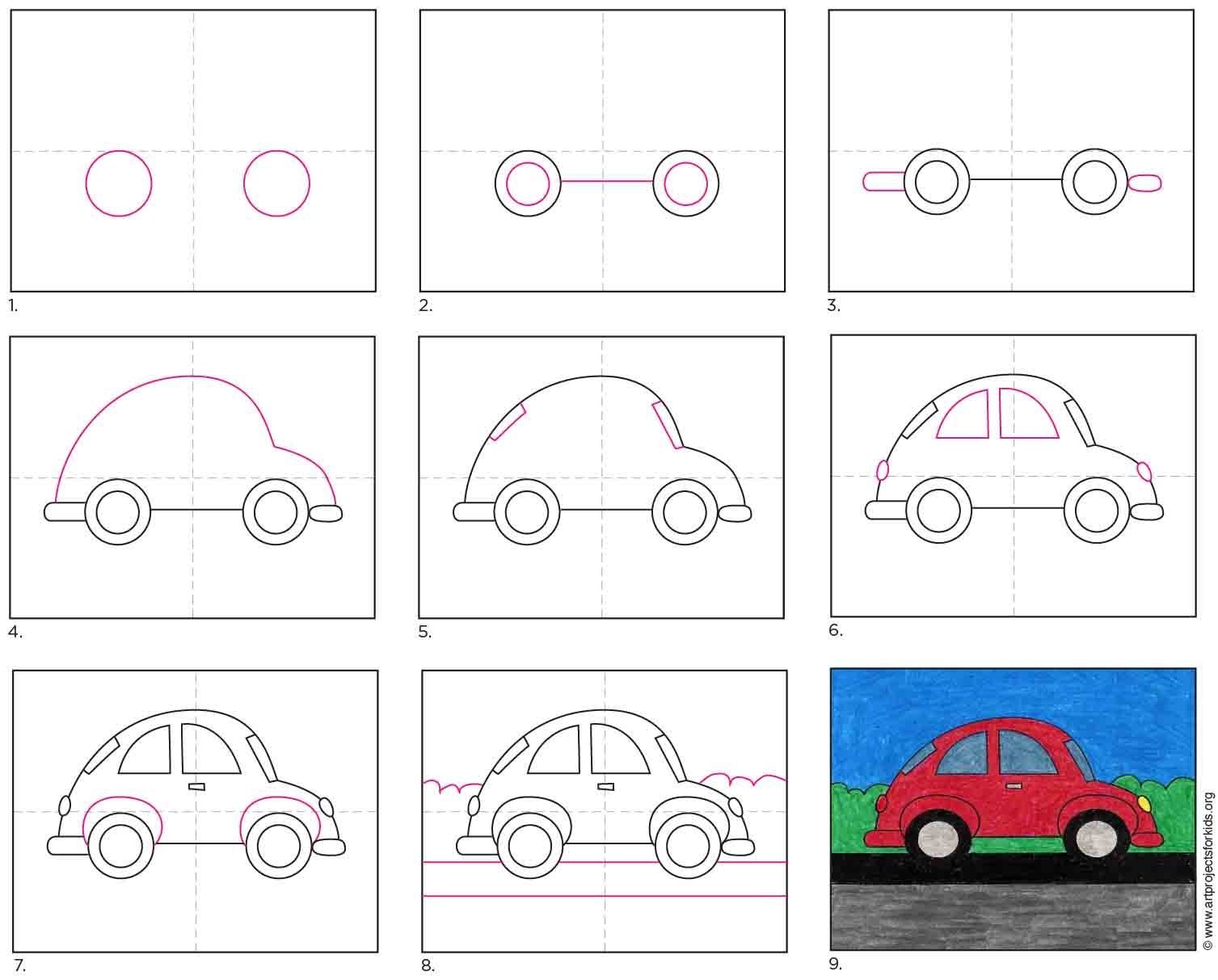Как нарисовать машину поэтапно легко ребёнку