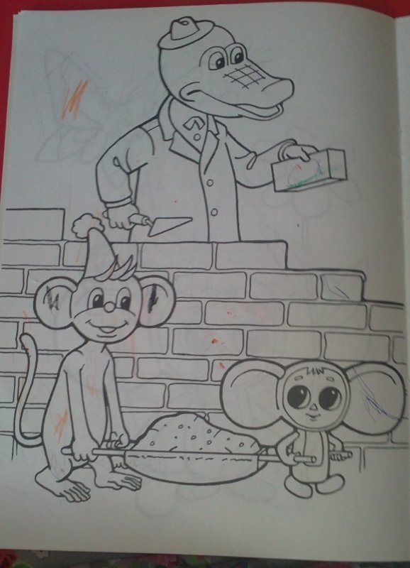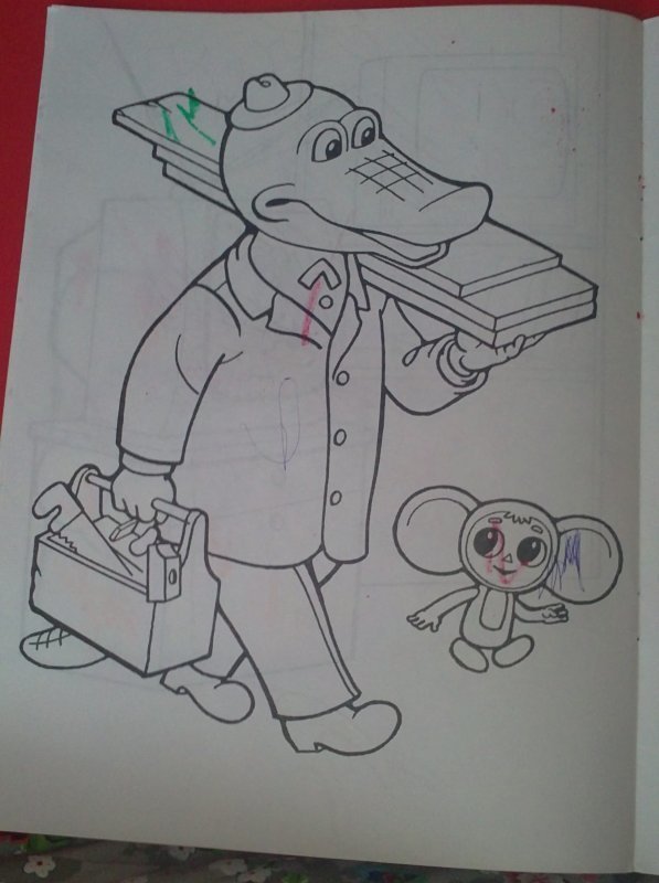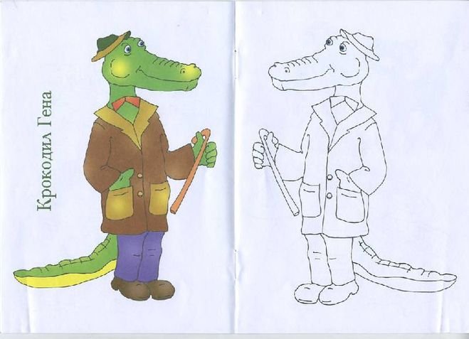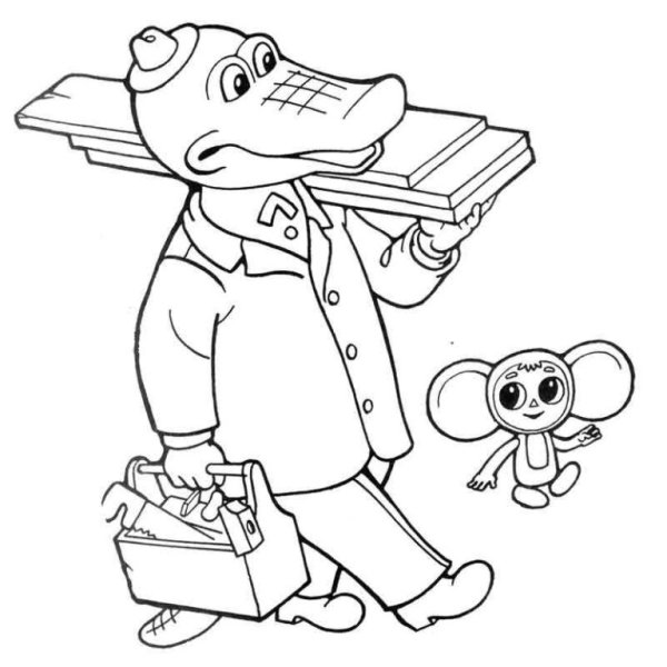 ![Чебурашка и крокодил Гена раскраски для детей]()