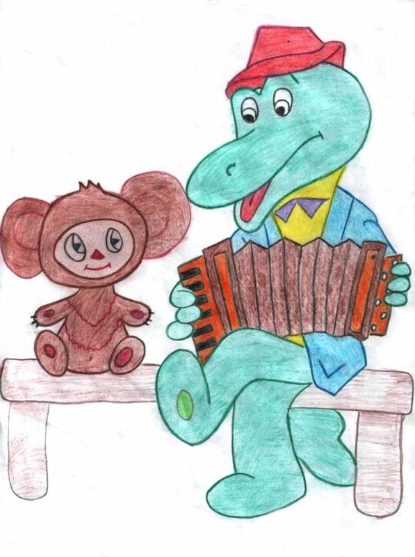![Крокодил Гена и Чебурашка рисунок 2 класс]()