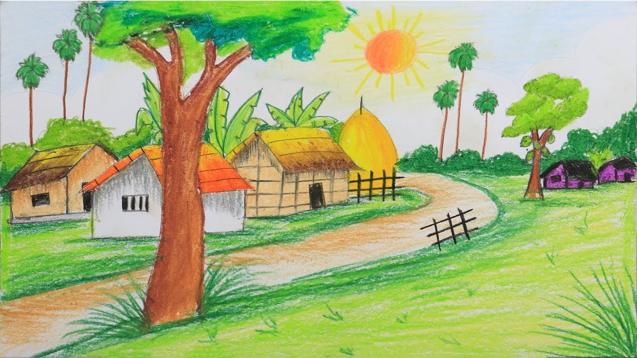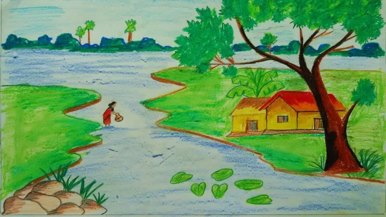 Сельский пейзаж рисунки детей