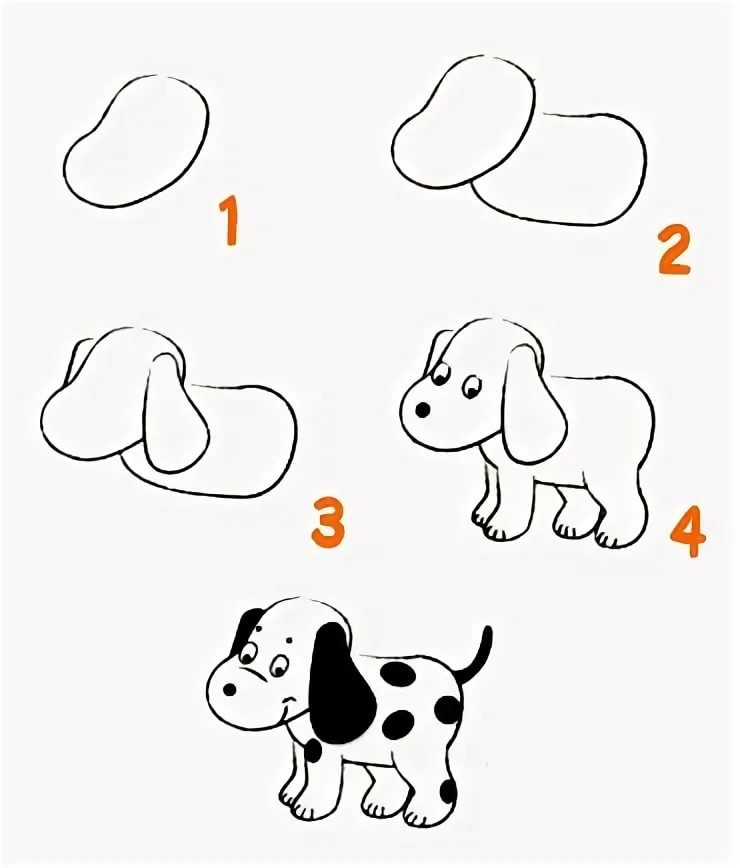Этапы рисования собаки для детей