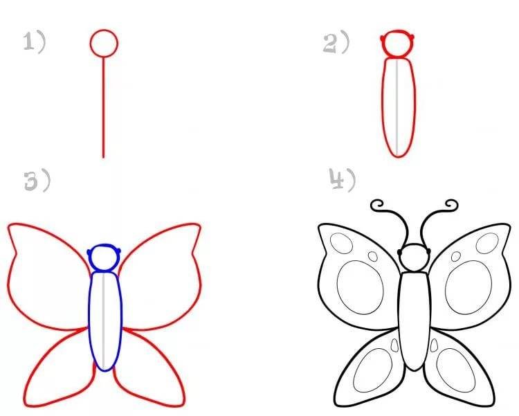 Бабочка поэтапное рисование для детей
