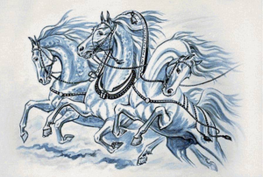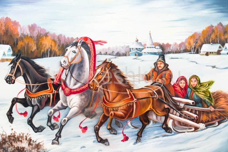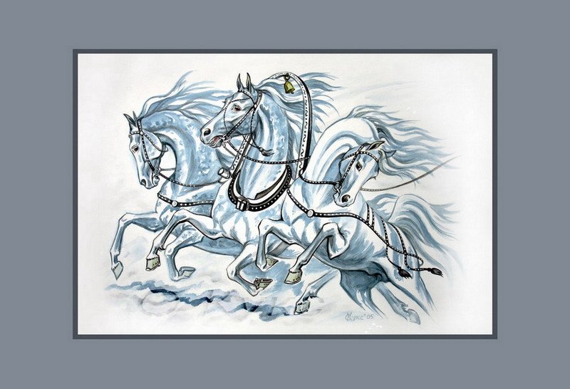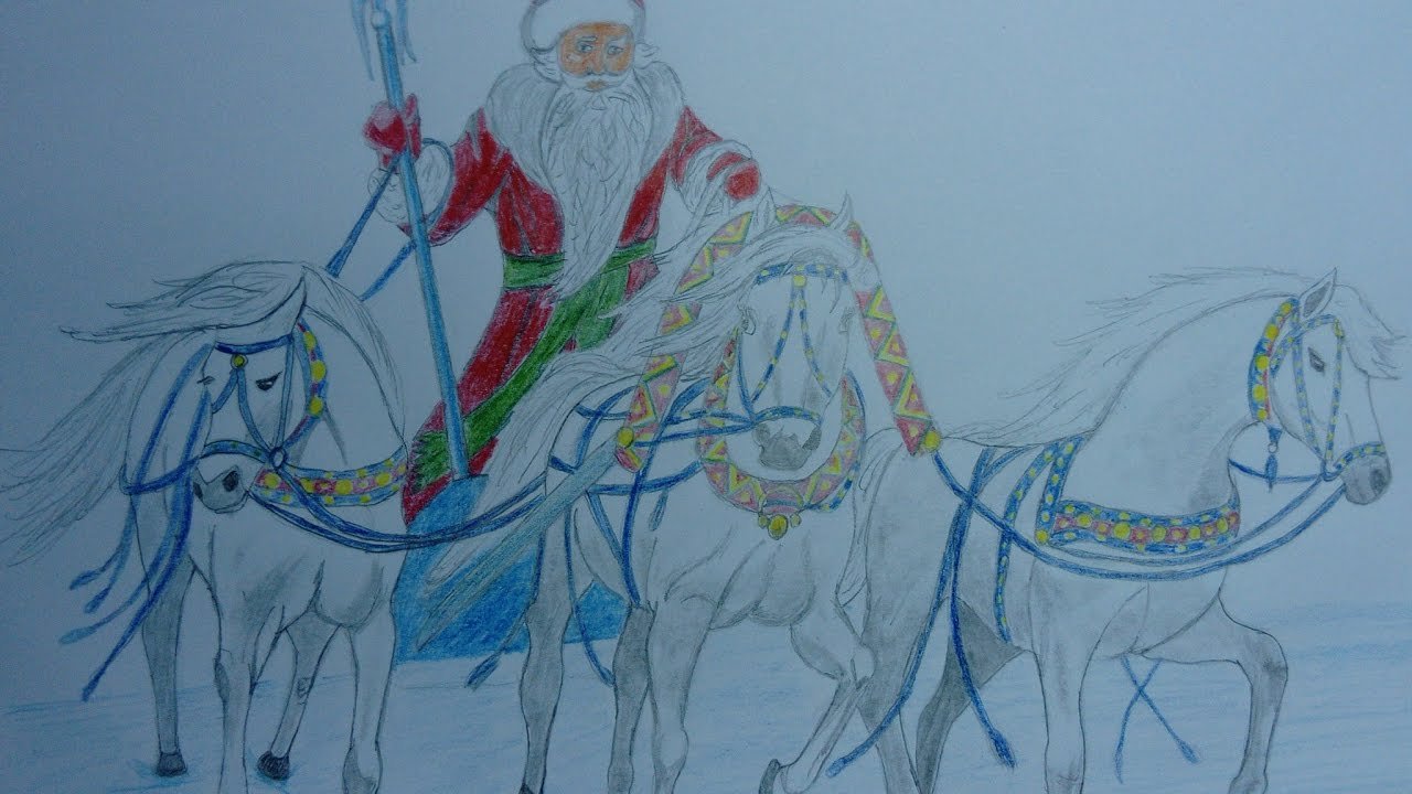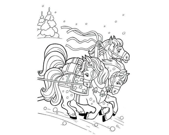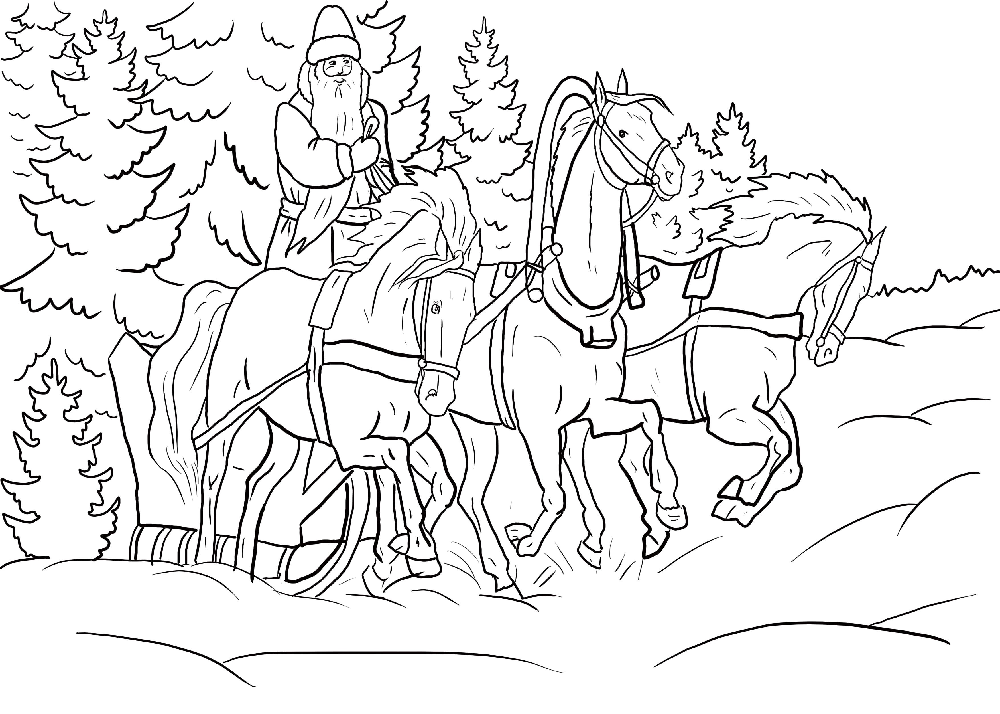 ![Вытынанка тройка лошадей с дедом Морозом]()