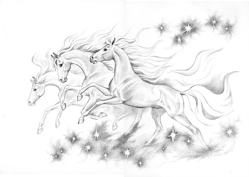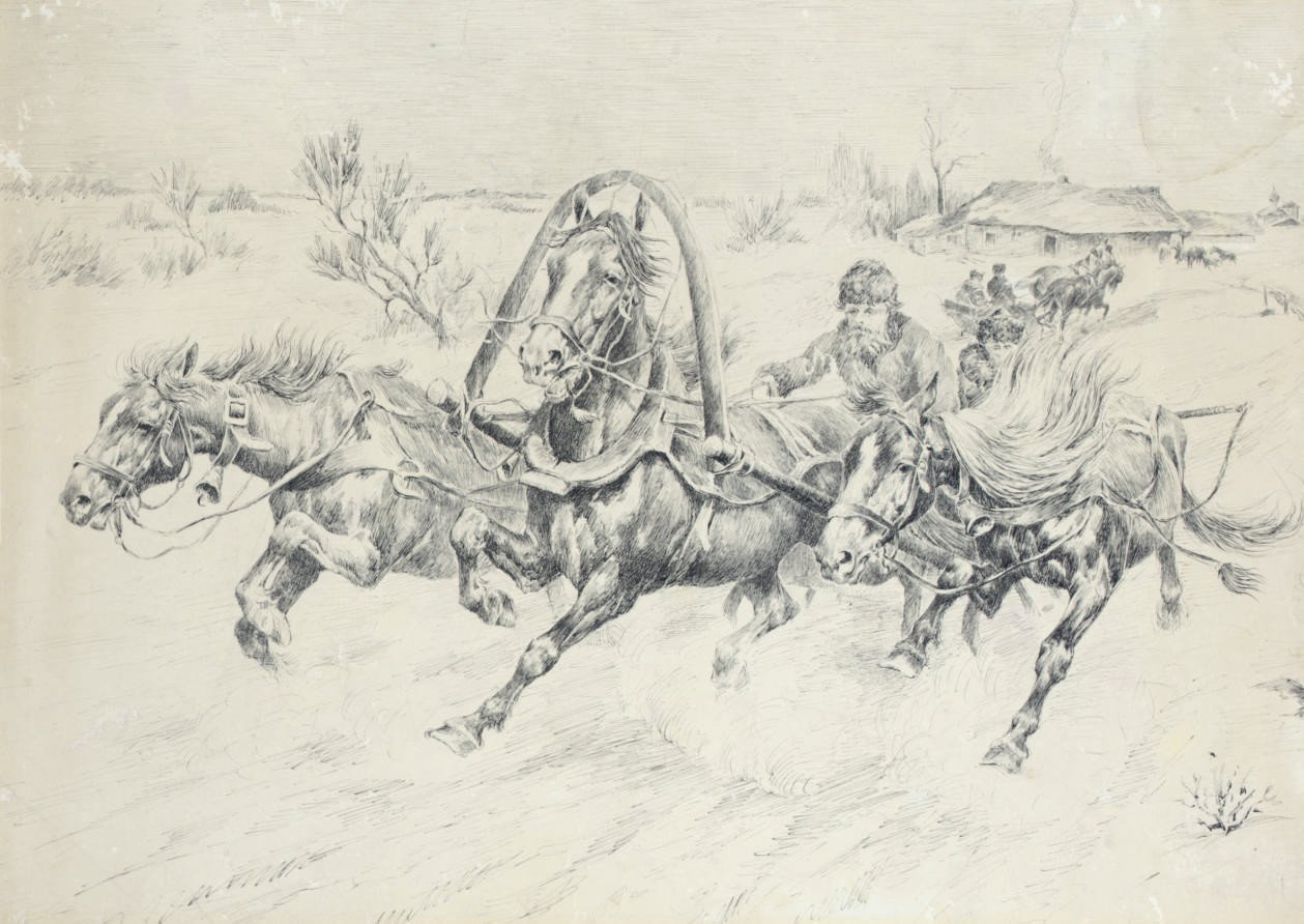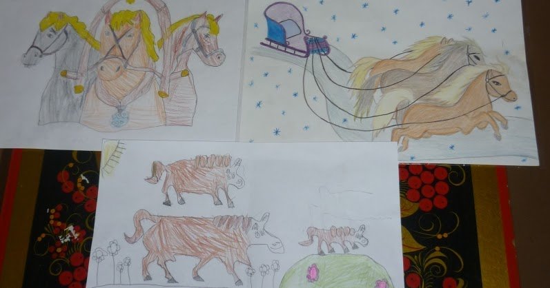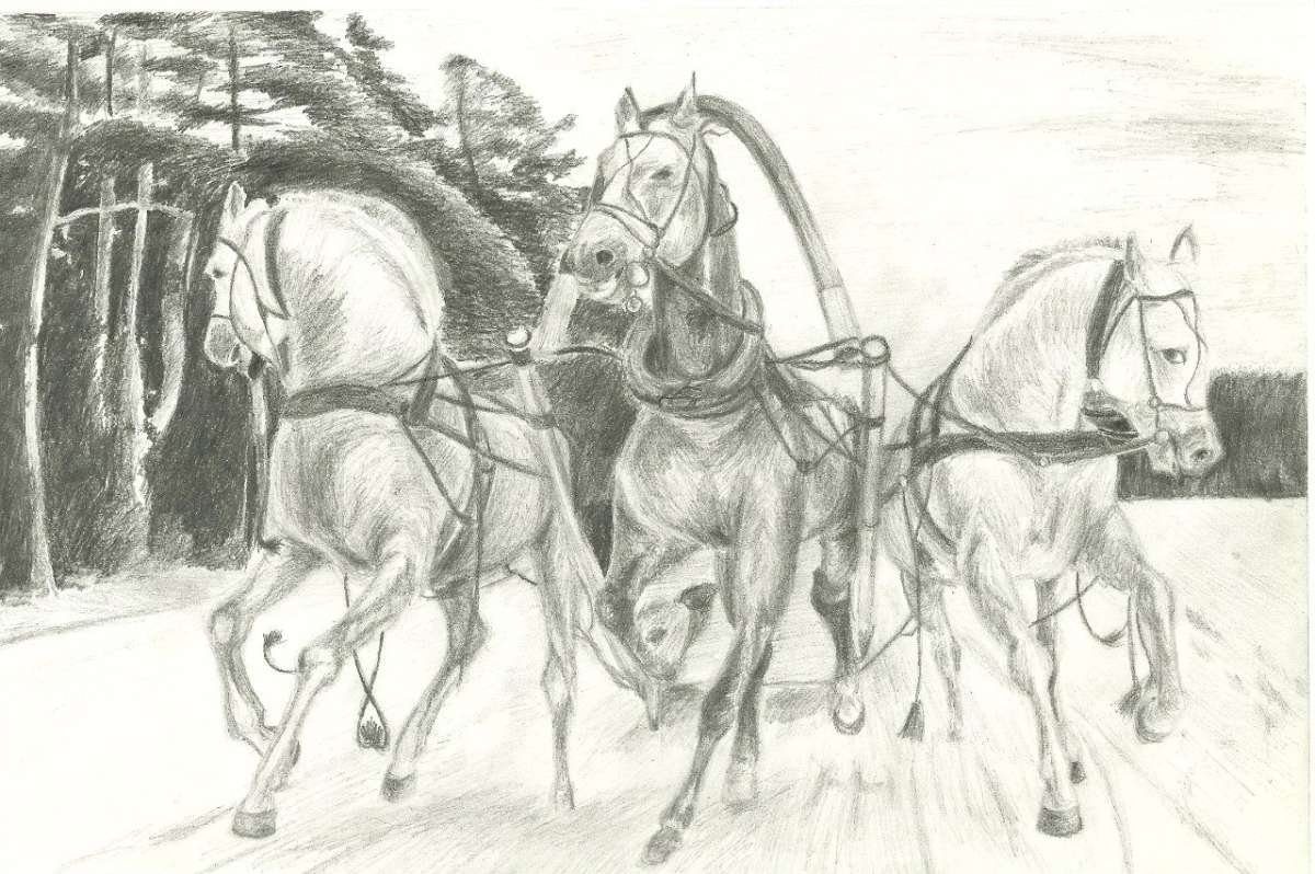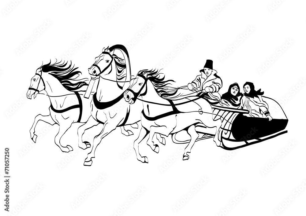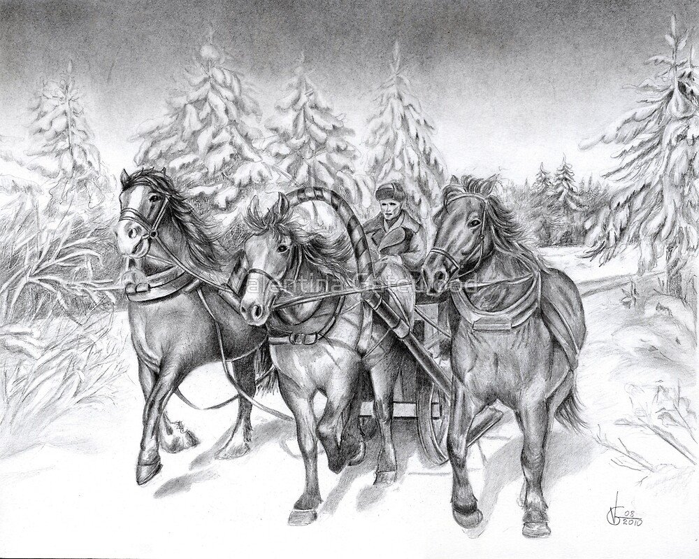 ![Вытынанка тройка лошадей с дедом Морозом]()
