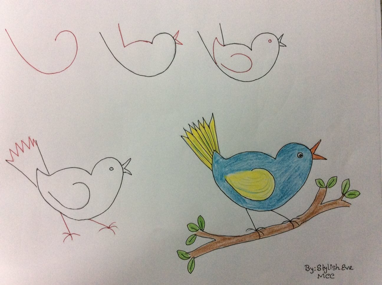 Этапы рисования птицы