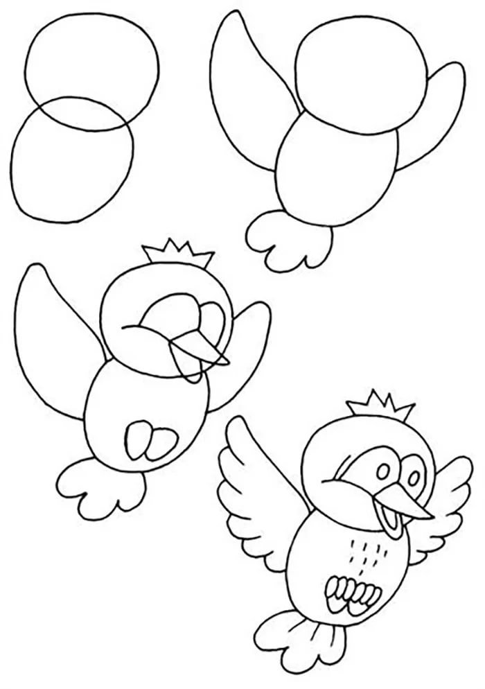 Поэтапное рисование птиц для детей