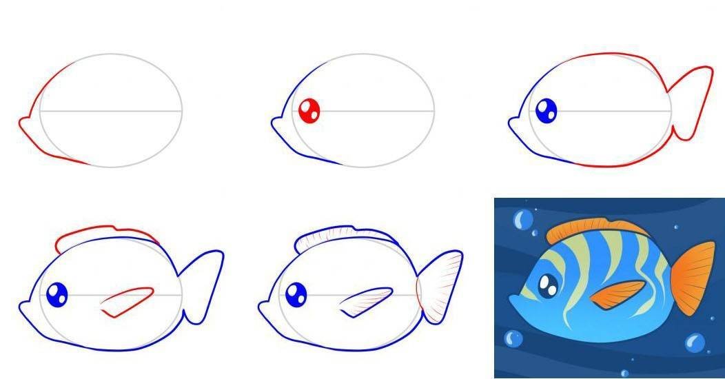 Поэтапное рисование рыбки для детей