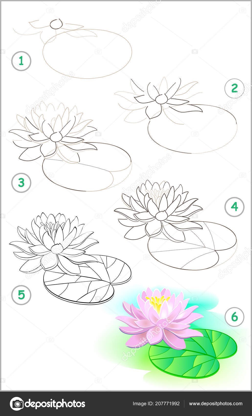 ![Поэтапное рисование кувшинки]()