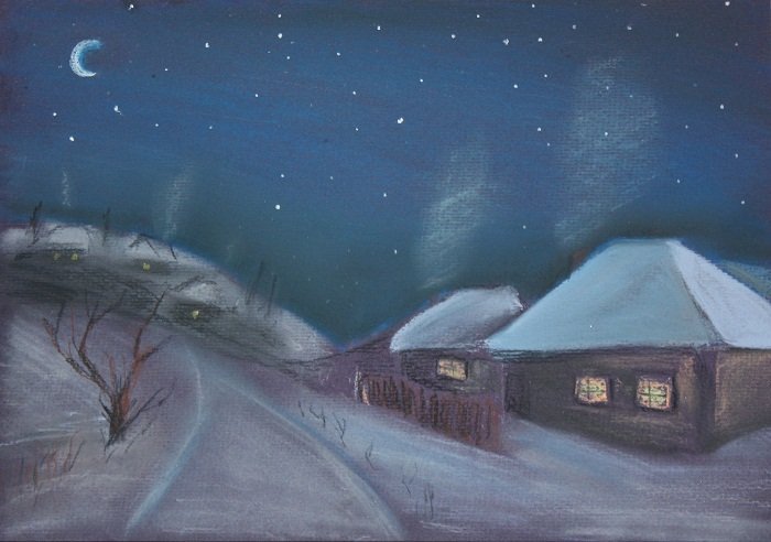 ![Нарисовать иллюстрацию ночь перед Рождеством]()