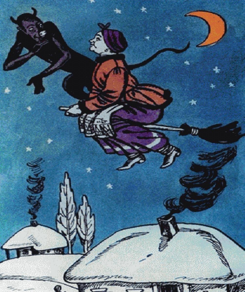 ![Иллюстрация к рассказу Гоголя ночь перед Рождеством]()