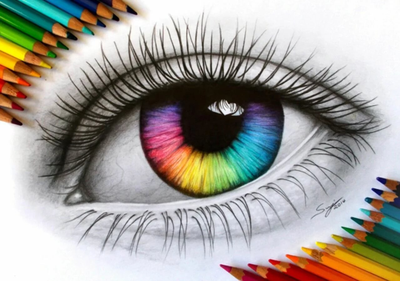 Глаз цветными карандашами