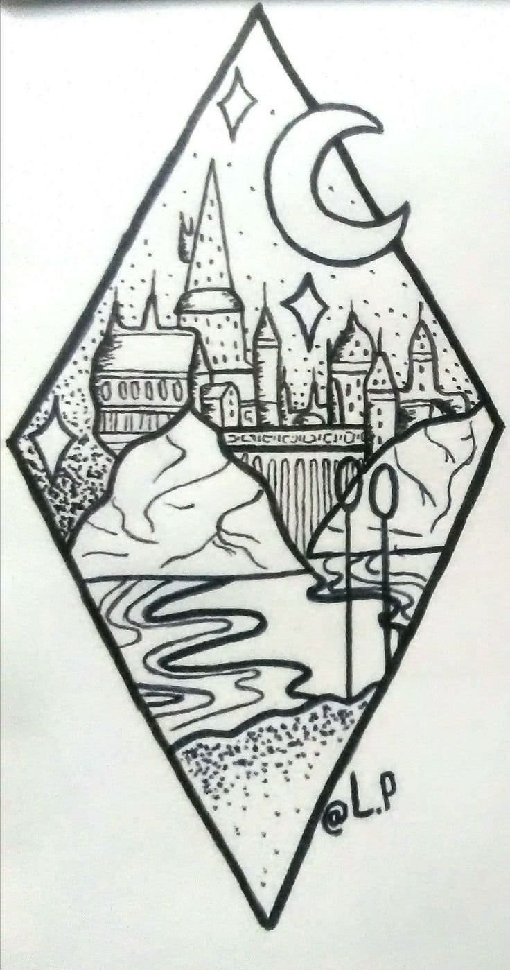 ![Тату Гарри Поттер Хогвартс эскиз]()