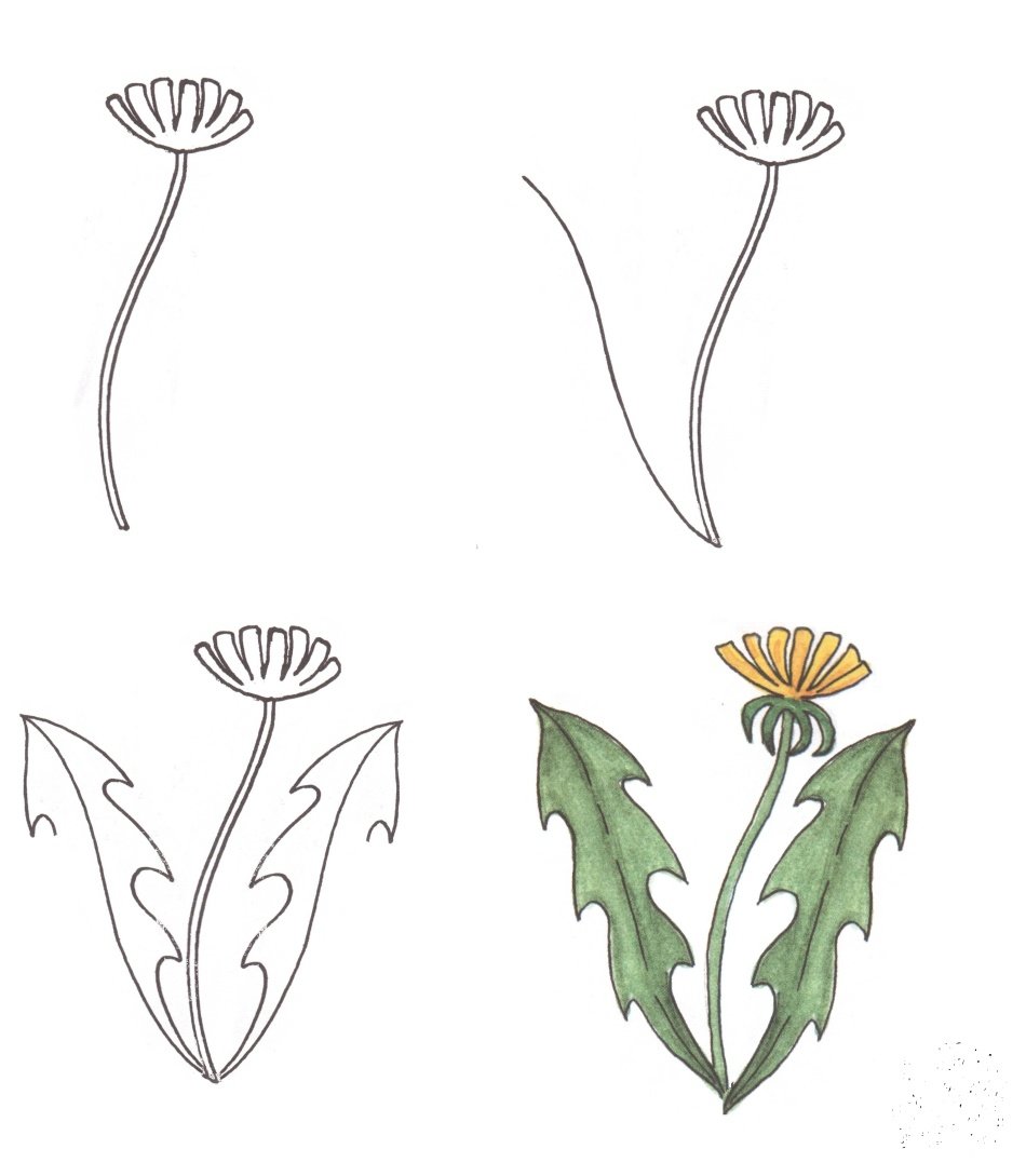 Поэтапное рисование одуванчика