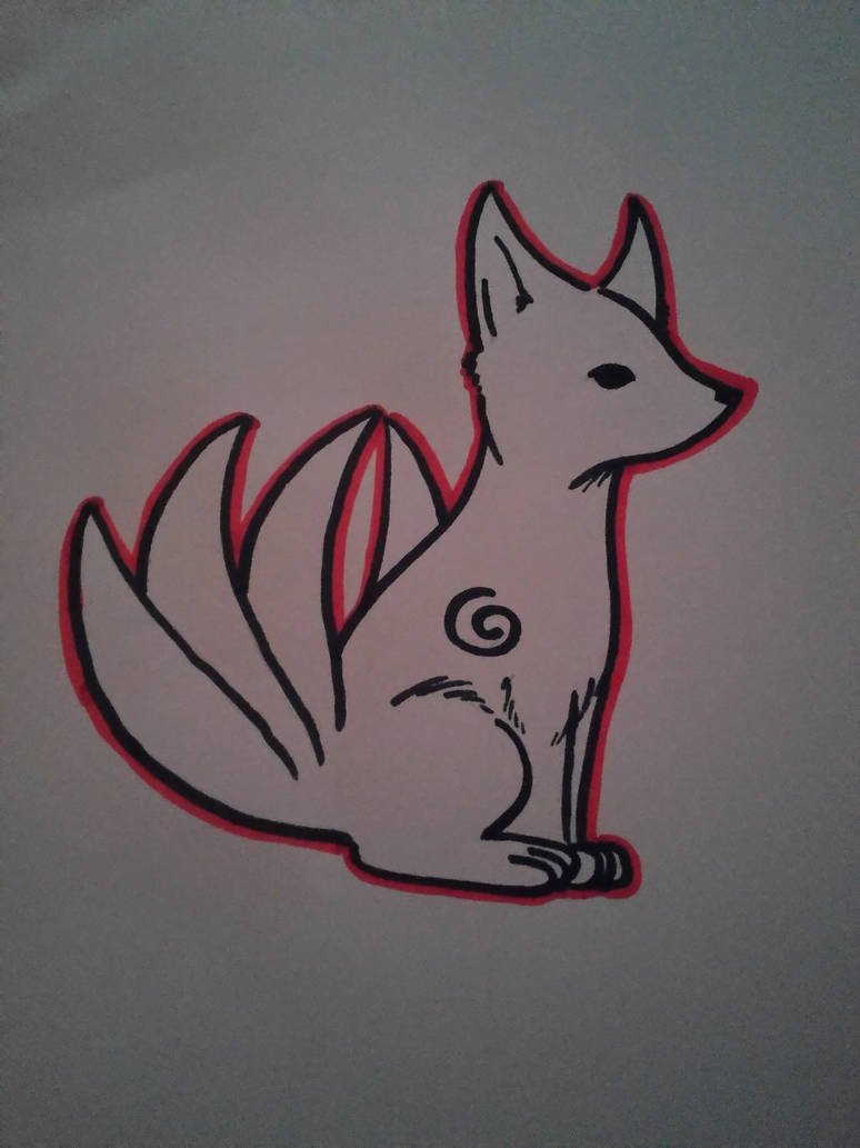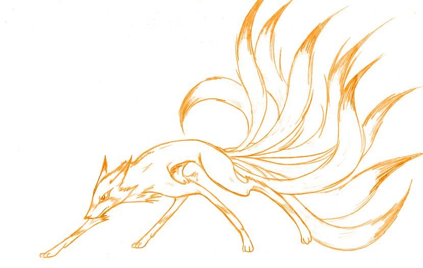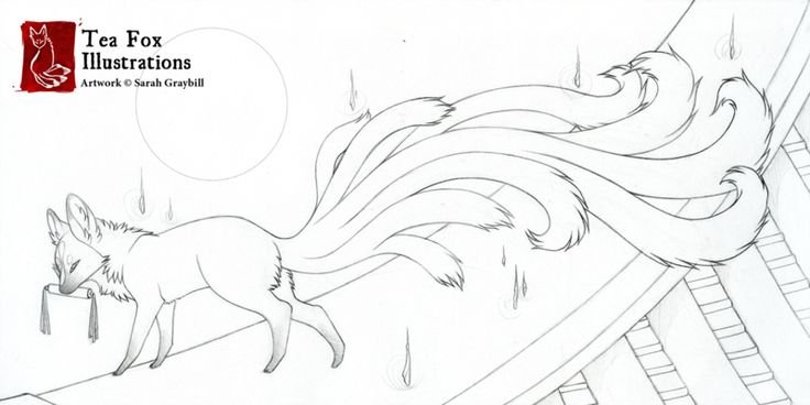 Кицунэ лиса рисунок для срисовки