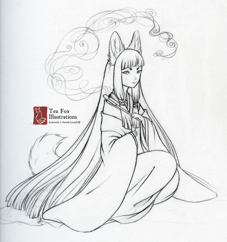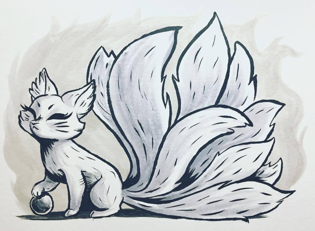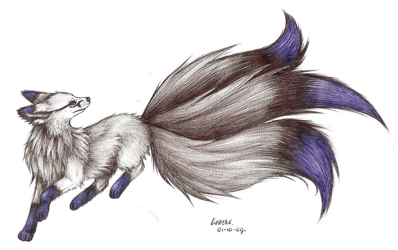 Мифические существа рисунки Кицунэ