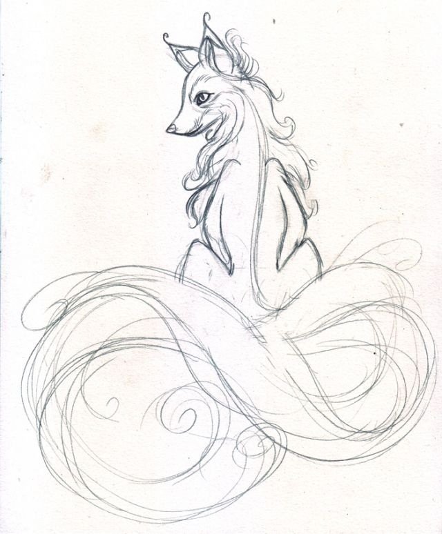 Рисунки лисицы Кицунэ карандашом