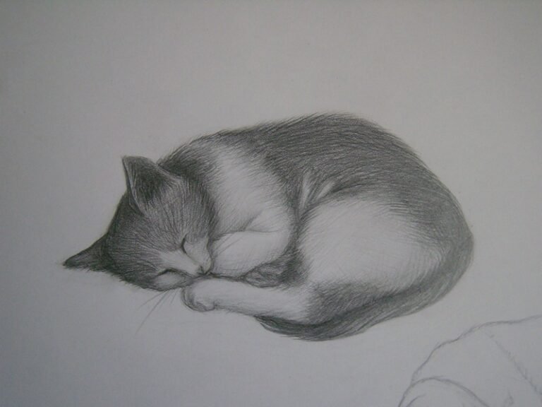 Спящий кот карандашом