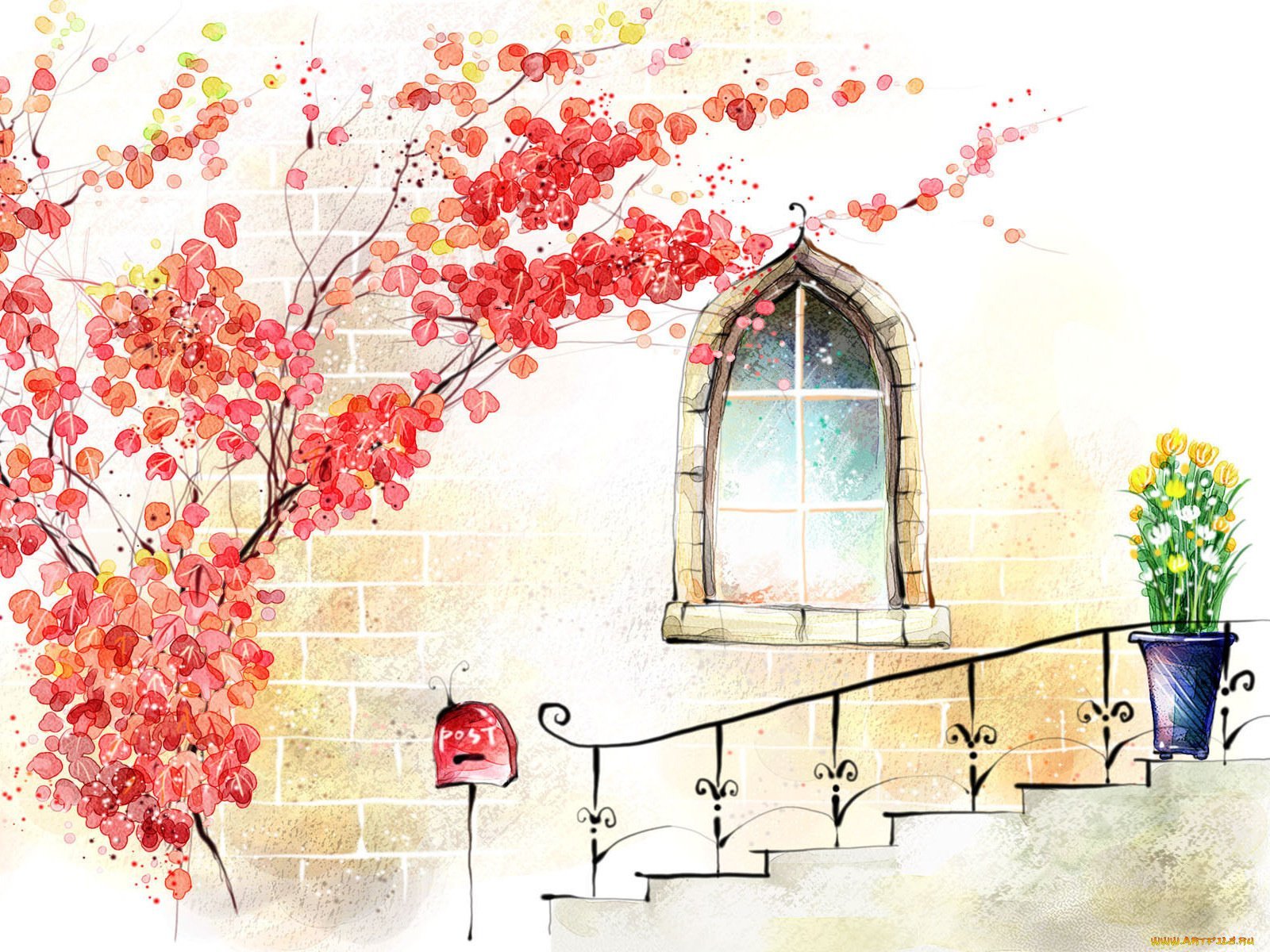 Рисунок на стене природа